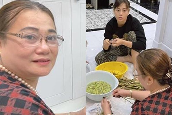 Mẹ Phương Oanh lên thăm con gái lúc nữ diễn viên bầu song thai.