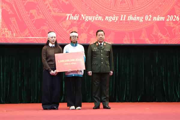 Tại buổi lễ, Công an tỉnh Thái Nguyên trao số tiền 1 tỷ đồng do cán bộ, chiến sĩ quyên góp hỗ trợ thân nhân gia đình Trung tá Lao Hoàng Hải.