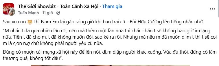 Thời gian gần đây, Nam Em trở thành tâm điểm chú ý trên mạng xã hội khi liên tục xuất hiện trong các buổi livestream với biểu hiện cảm xúc thất thường. Từ khóc nức nở, cười đột ngột đến những phát ngôn thiếu kiểm soát, hình ảnh của nữ ca sĩ khiến dư luận không khỏi hoang mang.
