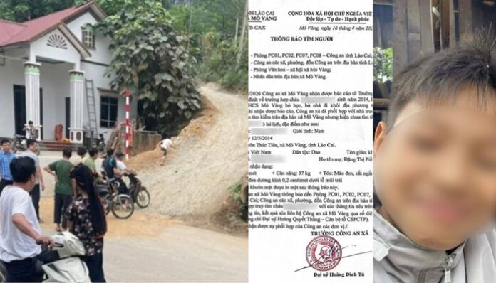 Tối 18/4, đại diện UBND xã Mỏ Vàng (Lào Cai) xác nhận đã tìm thấy thi thể một bé trai tại khu vực đồi thuộc thôn Thác Tiên.