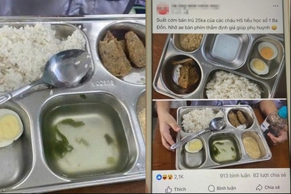 Tháng 10/2025, dư luận tại Quảng Trị xôn xao hình ảnh 2 khay cơm của học sinh Trường Tiểu học số 1 Ba Đồn với khẩu phần ăn 25.000 đồng/bữa/em. Trong đó, một khay có cơm trắng, khoảng 3 lát chả, 1 quả trứng luộc, muối lạc; khay còn lại có thêm canh rau.