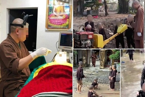 Hình ảnh sư trụ trì chùa Cẩm La khám chữa bệnh, làm thẩm mỹ nâng mũi, bọc răng sứ ngay tại chùa.