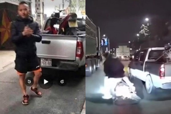 Trước đó mạng xã hội lan truyền đoạn clip dài 27 giây, được ghi vào khoảng 21h15′ ngày 27/2, cho thấy cảnh một ô tô bán tải màu ghi xám đang lưu thông thì bất ngờ tạt đầu, khiến người đi trên xe máy ngã xuống đường. Thời điểm xảy ra sự việc, trên xe máy có ba người: một phụ nữ điều khiển xe, một người đàn ông ngồi sau và một cháu bé.