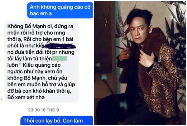 Duy Mạnh công khai tin nhắn một web cờ bạc đề nghị job quảng cáo.