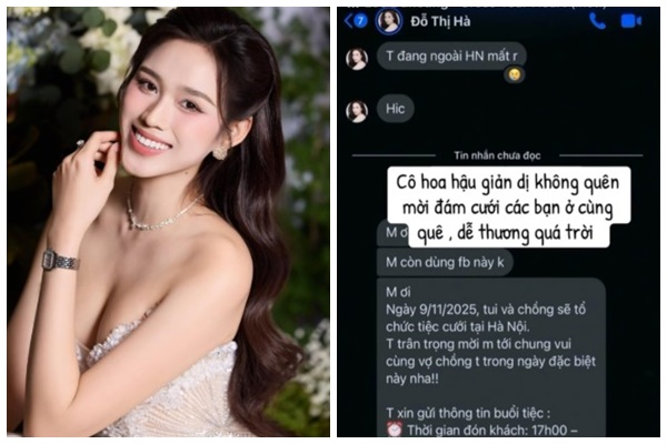 Bởi thông thường, nếu không gặp mặt nhau hoặc ở quá xa thì thường nhiều người sẽ nhờ bố mẹ gửi thiệp giùm, hoặc có nhắn qua tin nhắn thì thường sẽ đính kèm với ảnh chụp màn hình thiệp cưới. “Thấy okila quá trời luôn đó, người ta hoa hậu mà nhắn mời cưới thân thương, giản dị cỡ vậy. Nói chung một góc nhỏ nhưng cũng phần nào thể hiện tính cách con người bạn này. Thấy nhiều bạn bè cũng khen Hà, hôm cưới hàng xóm còn khen vừa ngoan vừa xinh từ bé giờ mà”, một cư dân mạng bình luận.