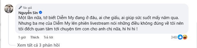 Chấn động, Nguyễn Sin tuyên bố biết Diễm My đang ở đâu, ai che gi:ấu, ai giúp sức suốt mấy năm qua