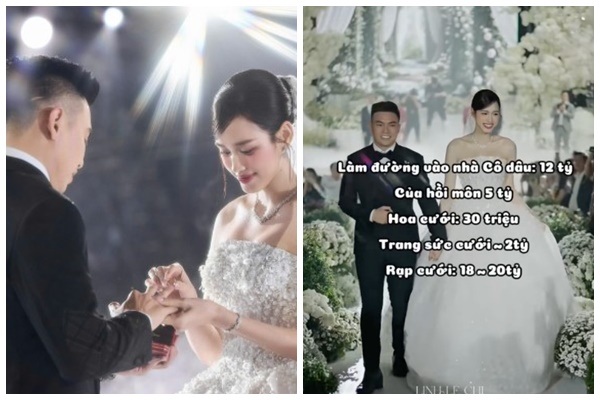 Theo bảng lan truyền, chi phí tổ chức lễ cưới có thể lên đến 40 tỷ đồng, bao gồm: Trang trí hoa tươi: 16 tỷ đồng, Tiệc cưới: 6 – 8 tỷ đồng, Dựng rạp: 18 – 20 tỷ đồng, Làm đường vào nhà cô dâu: 12 tỷ đồng, Của hồi môn: 5 tỷ đồng, Trang sức cưới: 2 tỷ đồng… Riêng bó hoa dùng cho ngày cưới lên đến 30 triệu đồng.
