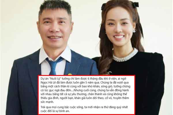 Cô viết: “Tưởng chỉ làm được 6 tháng đầu khi ở viện, ai ngờ Ngọc Hà Lê đã làm được luôn gần 5 năm qua. Chúng ta đã vượt qua bằng một cách thần kì cùng với bao khó khăn, sóng gió, tưởng chừng có lúc gục ngã đau đớn. Nhưng cuối cùng, chúng ta vẫn đồng hành với nhau bằng tất cả sự yêu thương, chân thành và cũng không thể thiếu gia đình, người bạn, khán giả luôn dõi theo, cổ vũ, truyền thêm sức mạnh. Trải qua mọi cung bậc cuộc sống, ta mới nhận ra thứ đáng quý nhất cuộc đời là sự bình an”.