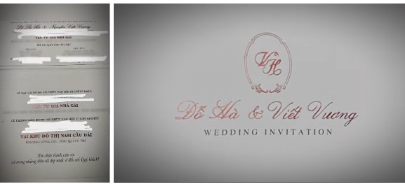 Có thể thấy, thiệp cưới của cả hai được thiết kế đơn giản, tinh tế, có logo chữa H&V lồng vào nhau, tượng trưng cho sự gắn kết của cả hai. Đỗ Thị Hà và Viết Vương sẽ tổ chức lễ nạp tại tại cư gia nhà gái. Sau đó, hôn lễ của cả hai sẽ tại khu đô thị Nam Cầu Dài (TP. Đồng Hới, Quảng Trị – quê nhà chú rể Viết Vương. Theo nguồn tin của chúng tôi, hôn lễ hào môn này sẽ diễn ra trong tháng 10/2025.
