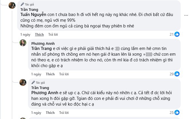 Trước đó, tài khoản em dâu Phương Oanh tên Trang Trần mới đây đã tiết lộ chuyện chồng cô không đủ tư cách làm chồng, làm cha khi bỏ bê không quan tâm con lấy 1 lời: