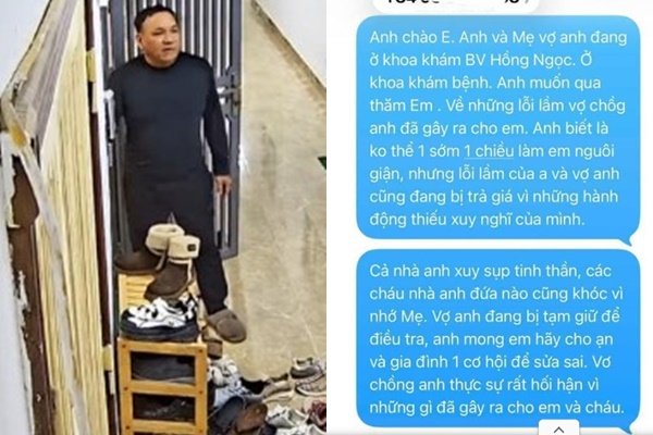 Đáng chú ý, những ngày gần đây, trên mạng xã hội xuất hiện đoạn tin nhắn được cho là của chồng bà Vân Anh gửi cho chị H., bày tỏ sự hối lỗi và mong muốn gia đình được tạo điều kiện sửa sai. Trong nội dung tin nhắn, người này cho biết vợ chồng rất ân hận về sự việc đã xảy ra, đồng thời ngỏ ý đến thăm hỏi nạn nhân.