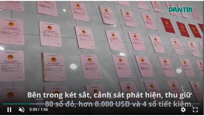 Khi két mở, lực lượng chức năng phát hiện bên trong chứa 80 giấy chứng nhận quyền sử dụng đất (sổ đỏ) và 8.000 USD. Ngoài ra, còn có 4 sổ tiết kiệm tổng trị giá 3,2 tỷ đồng.