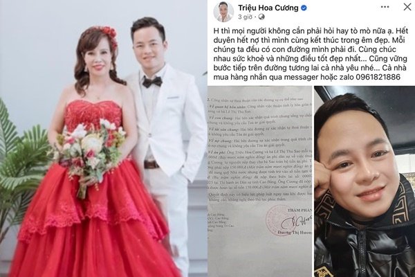 Theo nội dung thông báo vào ngày 27/1, ông Triệu Hoa Cương cho biết hai người đã “hết duyên, hết nợ” và lựa chọn dừng lại trong êm đẹp. Ông cũng gửi lời chúc sức khỏe và mong mỗi người sẽ có con đường riêng phù hợp hơn trong chặng đường sắp tới. Dòng trạng thái nhanh chóng nhận được nhiều bình luận trái chiều từ cộng đồng mạng, bởi đây từng là một trong những cặp đôi có sự chênh lệch tuổi tác lớn nhất từng được công chúng biết đến.