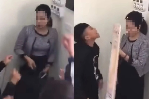 Theo các đoạn clip lan truyền trên mạng, cô H. bị nhóm đông học sinh liên tục ném dép vào người, văng tục, chốt cửa nhốt cô trong lớp. Đỉnh điểm, khi một chiếc dép ném trúng vào trán, cô giáo đưa tay lên sờ trán mấy giây rồi nằm lăn xuống nền nhà bất động.