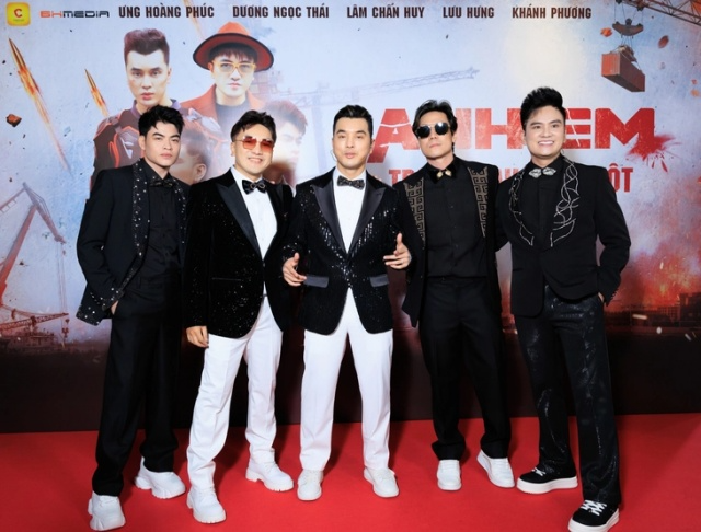 Nhóm Ngũ Hổ Tướng trong buổi ra mắt MV Anh em trước sau như một. Ảnh: BTC