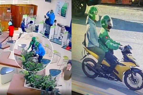 Chỉ khoảng 1 phút sau, chị P.T.C thấy một người mặc áo khoác xe công nghệ đi ra ngồi lên xe, liền sau đó là một thanh niên khác cầm theo túi xách, tay cầm vật dụng giống súng ngắn. Lúc này chị bắt đầu lờ mờ đoán được tình hình và có phần hoảng sợ.