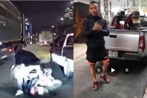 Cú tạt đầu khiến xe máy đổ xuống đường, cả 3 người ngã sát cạnh một  xe tải hạng nặng đang lưu thông cùng chiều, tiềm ẩn nguy cơ tai nạn đặc biệt nghiêm trọng. Sau khi xảy ra sự việc, tài xế xe bán tải điều khiển phương tiện rời khỏi hiện trường.