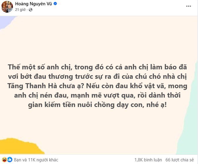 Loạt bình luận của người hâm mộ và sao Việt dưới bài đăng của Hà Tăng