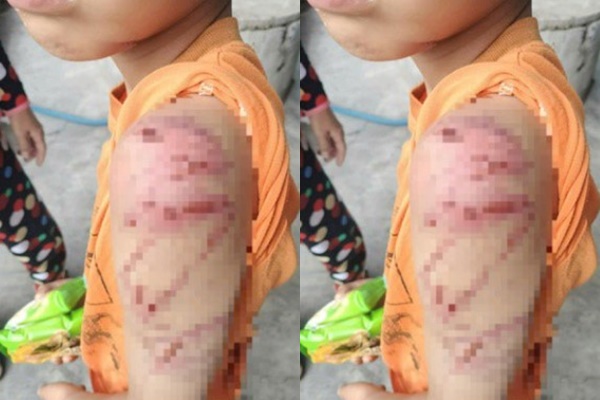 Hình ảnh cháu trai thương tích đầy mình được lan truyền trên mạng xã hội, khiến nhiều người bức xúc.
