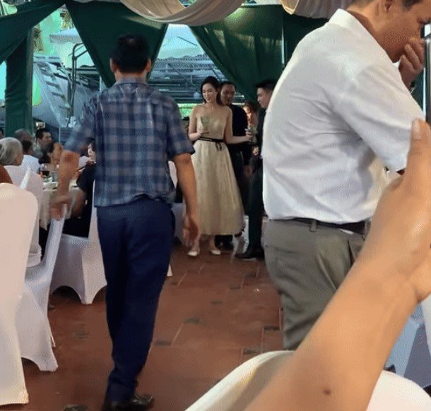 Bố của Đỗ Hà dắt cô dâu chú rể chào từng bàn khách