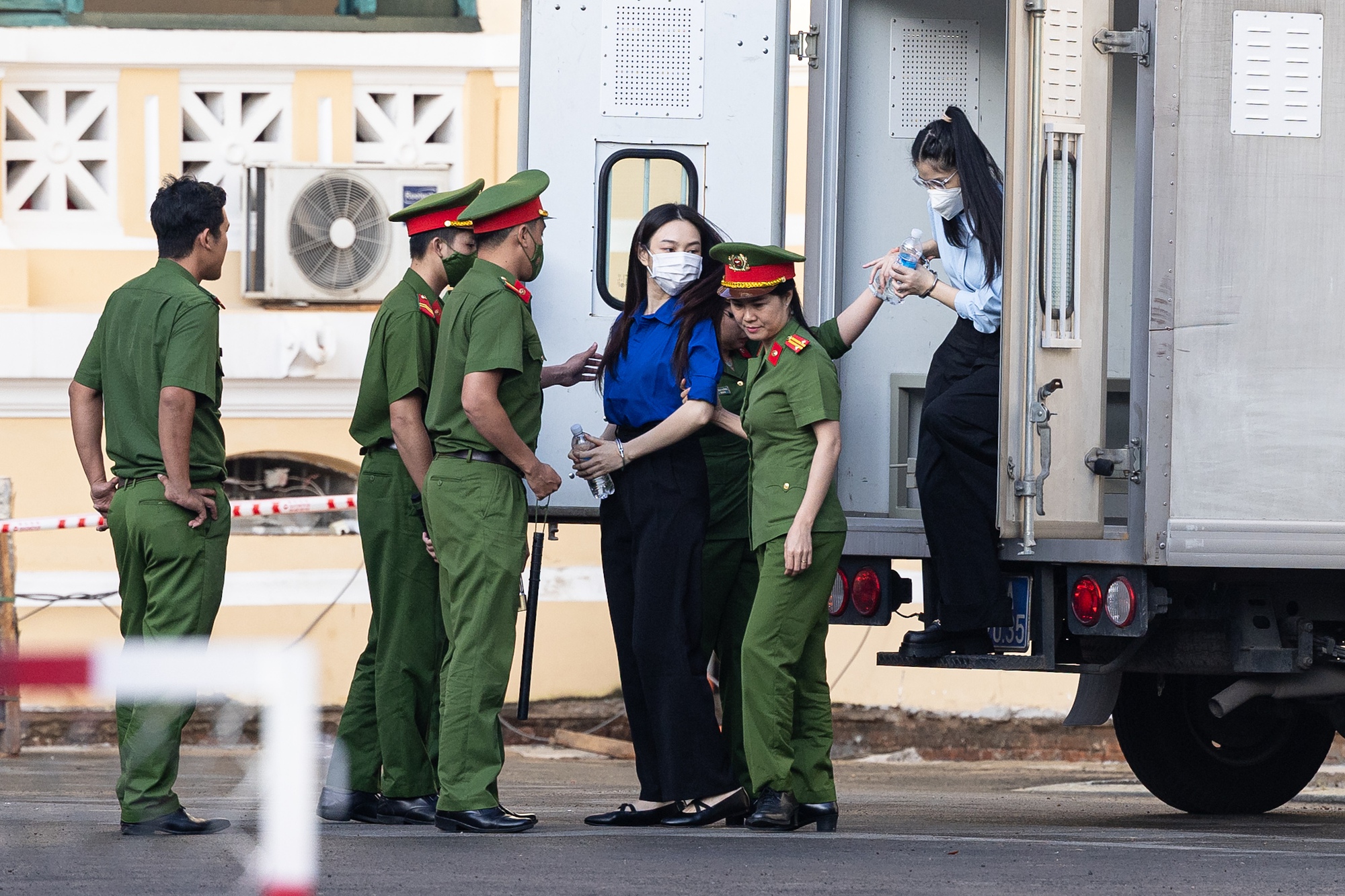 Cận cảnh Thuỳ Tiên bị còng tay áp giải đến toà, mặc áo màu xanh đặc biệt gây chú ý- Ảnh 4.