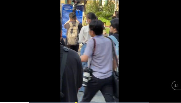 Hoa khôi Thuý Vi xuất hiện, cô làm thủ tục để vào bên trong phiên toà