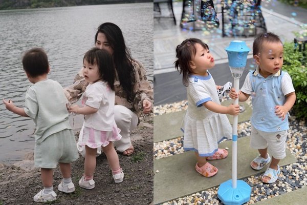 Hình ảnh cặp song sinh Jimmy và Jenny vui đùa cùng mẹ vừa được diễn viên Phương Oanh hé lộ, cho thấy sự trưởng thành và tình cảm gắn kết của hai anh em.
