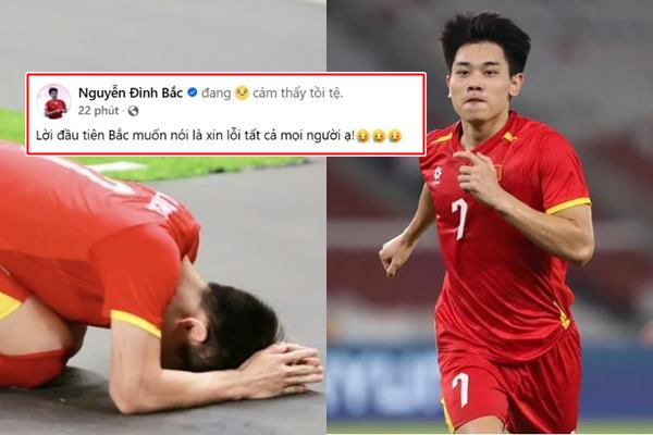 Ít phút sau khi trận đấu khép lại, trên Facebook cá nhân, tiền đạo Nguyễn Đình Bắc đã đăng tải hình ảnh cúi đầu kèm dòng trạng thái ngắn ngủi nhưng nặng trĩu: “Lời đầu tiên Bắc muốn nói là xin lỗi tất cả mọi người”. Không biện minh, không giải thích dài dòng, chỉ là một lời xin lỗi trực diện gửi đến người hâm mộ – -hững người đã đặt rất nhiều kỳ vọng vào U23 Việt Nam ở trận bán kết quan trọng.