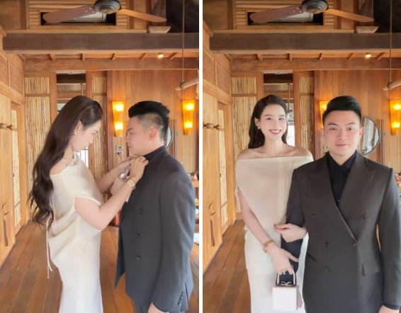 Đỗ Hà và chồng chuẩn bị trang phục để dự lễ cưới của Phương Nhi – Minh Hoàng.