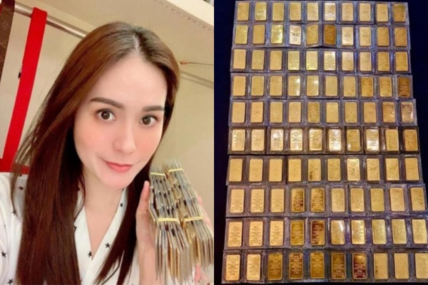 Vào năm 2021, cô từng khiến mạng xã hội “dậy sóng” khi công khai mua tới 100 cây vàng vào đúng dịp vía Thần Tài. Ảnh: FBNV