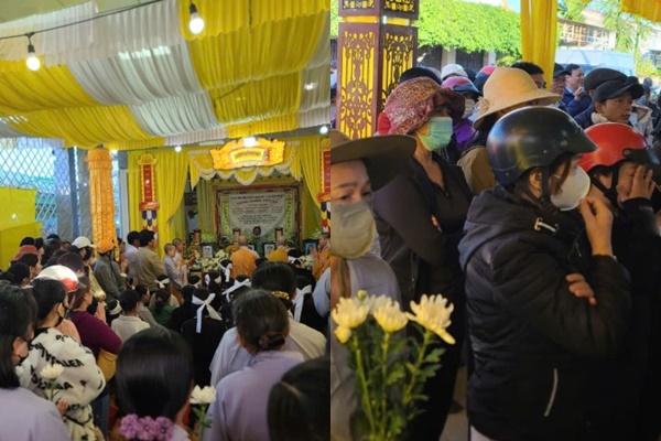 Trước giờ phút đưa tiễn 4 nạn nhân, nhiều người đứng lặng, xót xa đến nghẹn ngào trước cảnh bi thương.