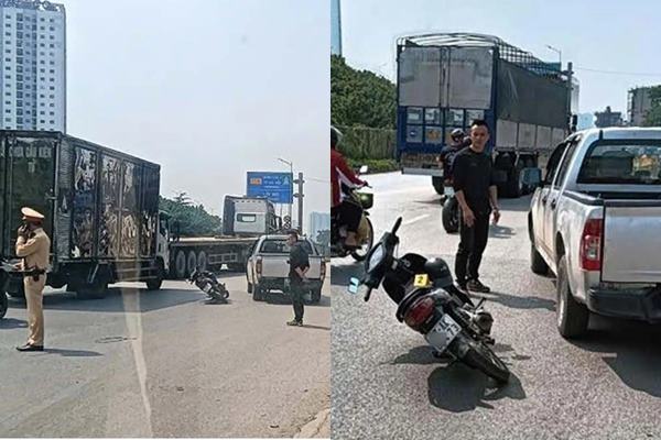 Dựng lại hiện trường vụ xe bán tải tạt đầu khiến 3 người suýt ngã vào xe tải lớn ở Hà Nội: Hôm trước còn kêu oan lắm cơ mà