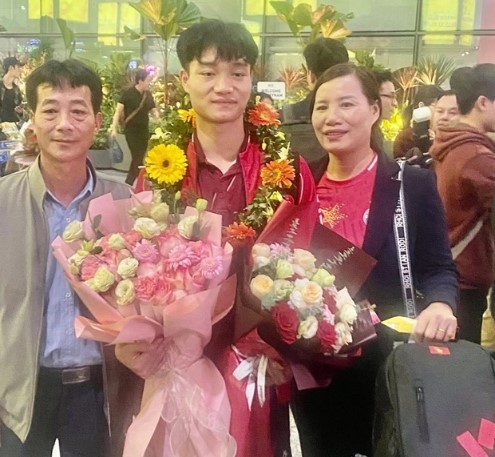 Khoảnh khắc bố mẹ đón Xuân Bắc sau khi giành huy chương vàng SEA Games 33 (Ảnh: Nhân vật cung cấp).