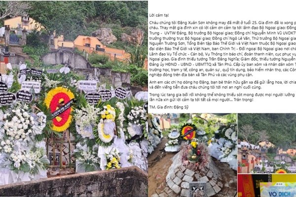 Sau khi đám tang của nam cán bộ ngoại giao qua đời vì TNGT ngay trước cửa nhà ở Nghệ An hoàn tất, gia đình họ Đặng đã lên tiếng cảm ơn các đoàn thể, ban ngành, bạn bè đã đến chia buồn cùng gia đình.
