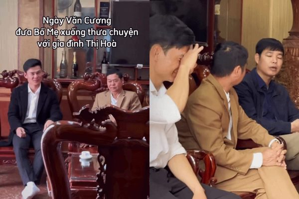Tối 19/3, Hoà Minzy lần đầu chia sẻ đoạn clip ghi lại khoảnh khắc Đại uý Thăng Văn Cương cùng gia đình sang nhà thưa chuyện cưới xin. Nữ ca sĩ cho biết: “Vào 1 ngày đẹp trời năm 2024, Đồng chí Thăng Văn Cương cùng gia đình xuống nhà thưa chuyện với gia đình em, bố mẹ em và đặc biệt là với ông nội”.