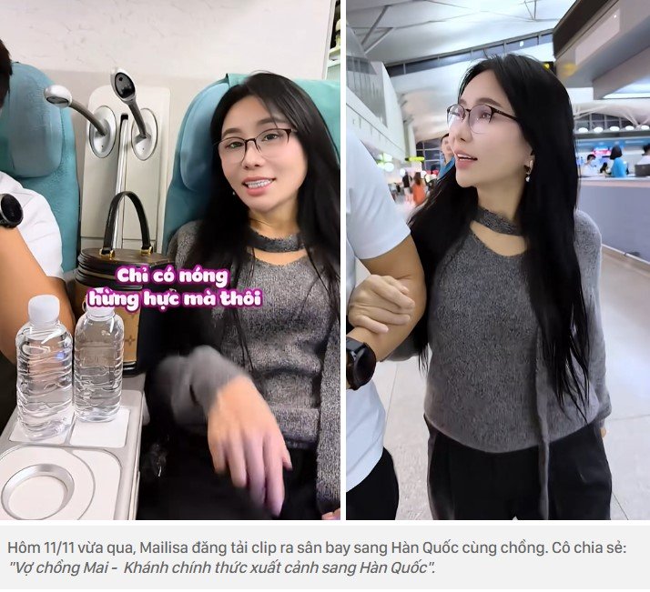 Hôm 11/11 vừa qua, Mailisa đăng tải clip ra sân bay sang Hàn Quốc cùng chồng. Cô chia sẻ:  “Vợ chồng Mai –  Khánh chính thức xuất cảnh sang Hàn Quốc”.