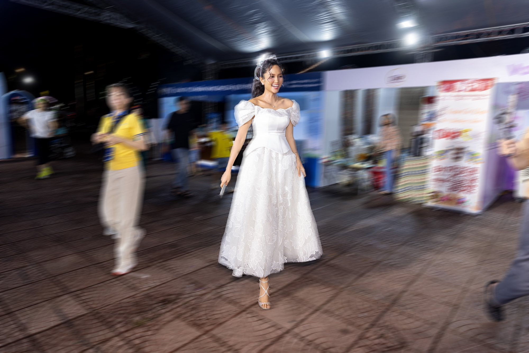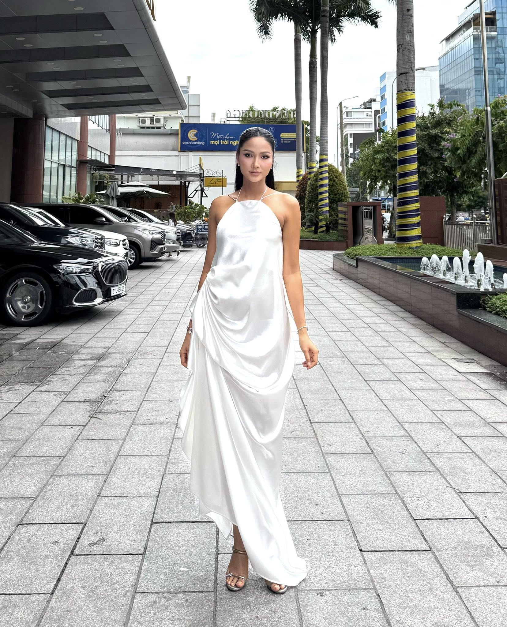 Event mới nhất, nàng hậu diện đầm lụa với chi tiết bèo nhún khéo che vòng hai lùm lùm. Hay ở một sự kiện trước đó, H’Hen Niê hóa thân thành nàng công chúa với chiếc đầm bồng xòe cổ tích. Tuy nhiên, điểm chung ở cả hai lần xuất hiện là bà xã Tuấn Khôi đều sử dụng giày cao gót khá nguy hiểm.