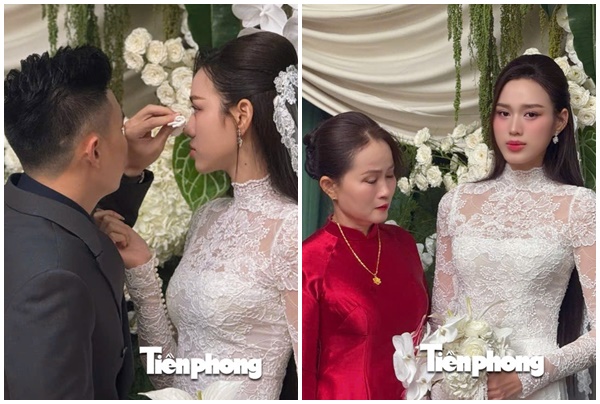 Cô dâu rưng rưng nước mắt khi nghe những lời dặn dò của cha mẹ.Đỗ Thị Hà và doanh nhân Viết Vương tìm hiểu từ năm 2024. Họ luôn giữ kín chuyện tình cảm trên mạng xã hội. Tới lễ nạp tài, Đỗ Thị Hà mới đăng ảnh cận mặt chú rể.Dự kiến chiều 22/10, gia đình chú rể đón cô dâu về tới Quảng Trị. Tiệc chiêu đãi sẽ tổ chức vào tối 22/10.