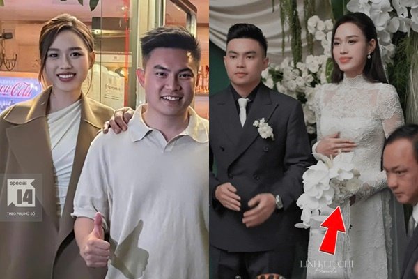 Trong ngày trọng đại, Hoa hậu sinh năm 2001 còn vướng nghi vấn đang có tin vui. Nguyên do vì trong một clip, nàng hậu xuất hiện rạng rỡ trong chiếc vxáy trắng đứng bên cạnh ông xã. Tuy nhiên, cô lại gây chú ý khi có hành động lấy tay ôm xoa bụng khiến nhiều người tò mò nghi vấn đang mang thai con đầu lòng.