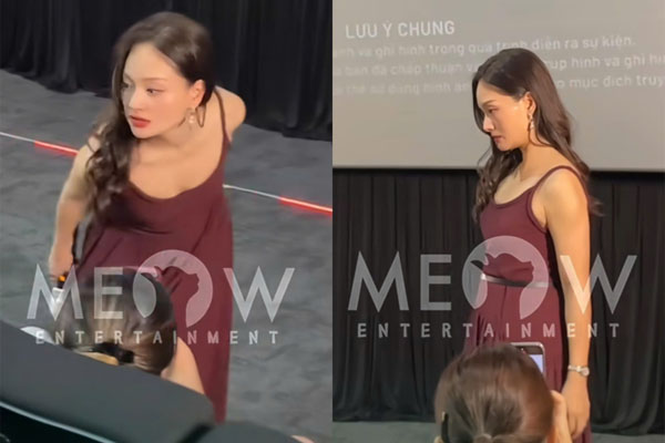 Tại sự kiện, nữ diễn viên bất ngờ tái hiện lại một phân đoạn trong phim. Chỉ trong thời gian nắn, Lan Phương gần như “bật mood” diễn xuất với ánh mắt sắc lạnh, liên tục liếc ngang liếc dọc như đang truy tìm một điều gì đó vô hình.