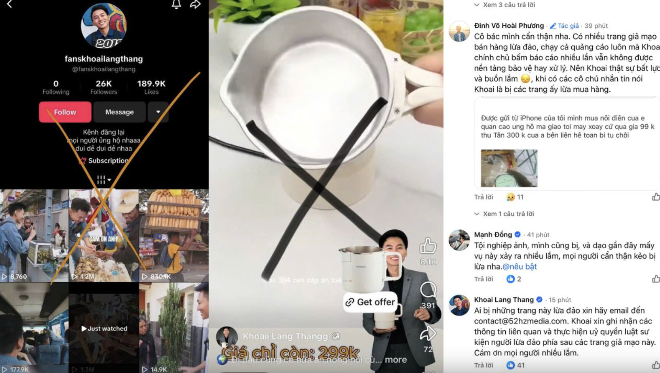 Các đối tượng liên tục dùng công nghệ AI để cắt ghép, tạo clip từ hình ảnh KOL Khoai Lang Thang nhằm lừa đảo, bán hàng kém chất lượng, kêu gọi đầu tư