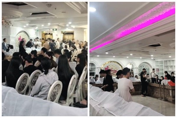 Hình ảnh này tạo nên sự đối lập mạnh với cảnh nhộn nhịp trước đây, khi vợ chồng Mailisa thường xuyên khoe lượng khách làm đẹp kín chỗ tại chính khu vực sảnh này. Những ngày cuối cùng, sự đông đúc ấy không còn là khách chờ dịch vụ mà là nhân viên chờ kết thúc hợp đồng.