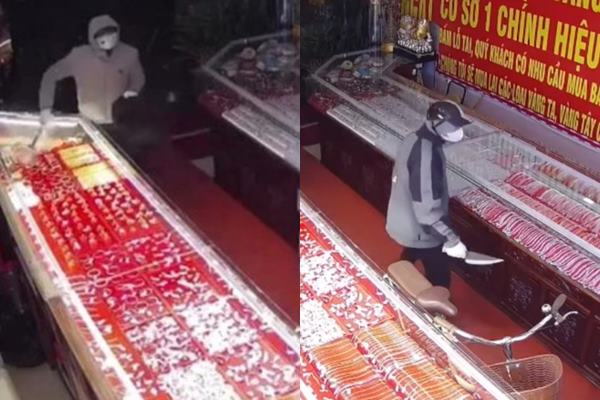 Theo báo Dân trí, tối 23/1, trên địa bàn phường Duy Tiên, tỉnh Ninh Bình xảy ra một vụ cướp tiệm vàng với thủ đoạn manh động. Hai đối tượng đi xe máy, mang theo dao và ba lô, đã xông vào cửa hàng, phá tủ kính lấy vàng rồi bỏ chạy.