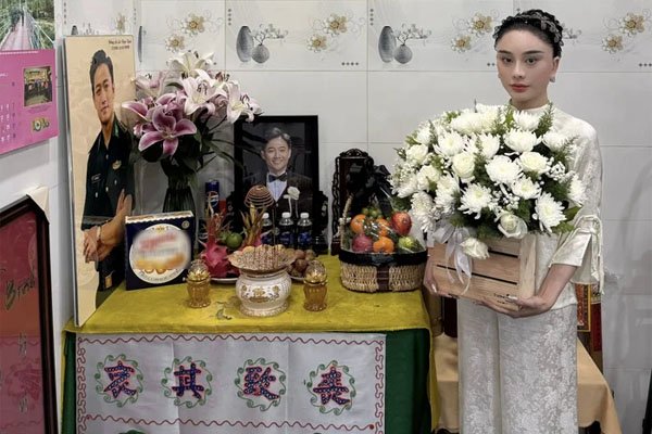 Trong tang lễ, nữ ca sĩ diện trang phục tối màu, gương mặt lộ rõ sự buồn bã, nhiều lần lặng người khi nhìn di ảnh của anh. Khi đó, cô nghẹn ngào chia sẻ: “Em đã đến tiễn anh đi, thương nhớ anh”.