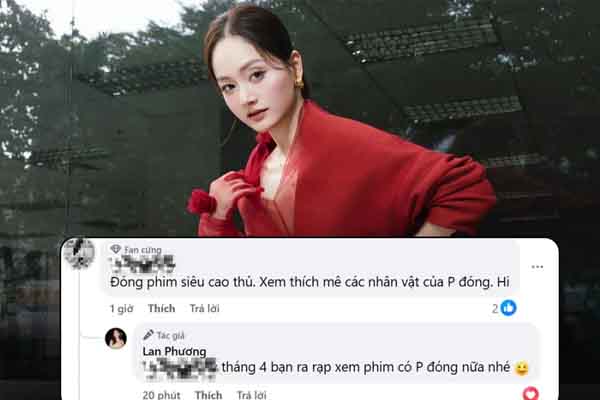 Mới đây, trên trang cá nhân, Lan Phương gây chú ý khi trực tiếp trả lời bình luận của một người hâm mộ. Cụ thể, fan này dành lời khen: “Đóng phim siêu cao thủ. Xem thích mê các nhân vật của Phương đóng”. Đáp lại, nữ diễn viên tiết lộ ngắn gọn: “Tháng 4 bạn ra rạp xem phim có Phương đóng nữa nhé”. Chia sẻ này nhanh chóng thu hút sự quan tâm lớn từ công chúng, làm dấy lên nhiều tò mò về dự án sắp ra mắt. Tuy nhiên, nữ diễn viên hiện vẫn chưa tiết lộ thêm bất kỳ thông tin cụ thể nào liên quan đến nội dung, vai diễn hay ê-kíp của bộ phim.