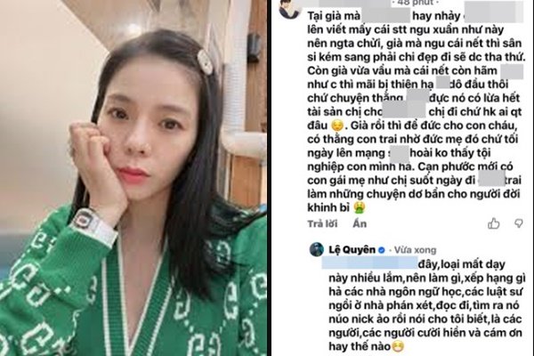 Đáng chú ý, dưới một bình luận bằng tiếng Anh của khán giả với nội dung: “Her flop era lowk serving” (tạm hiểu: đã qua thời đỉnh cao nhưng vẫn ổn), tài khoản được cho là của Lệ Quyên đã phản hồi bằng những lời lẽ gay gắt, sử dụng ngôn từ bị cho là thô tục và mang hàm ý miệt thị.