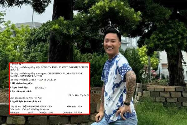 Đáng chú ý, Huấn “Hoa Hồng” còn góp vốn thành lập Công ty TNHH Vườn tùng Nhật Chiến Huấn JP (xã Gia Lâm, TP Hà Nội). Công ty được thành lập vào tháng 4/2024, do ông Đặng Hoàng Anh Chiến (SN 1985) làm Chủ tịch HĐTV kiêm người đại diện theo pháp luật.