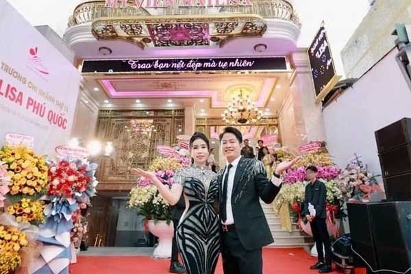 | Phan Thị Mai (biệt danh Mailisa), Giám đốc Công ty TNHH thẩm mỹ viện Mailisa và chồng là Hoàng Kim Khánh, lúc khai trương cơ sở ở Phú Quốc. Ảnh: FBNV. |