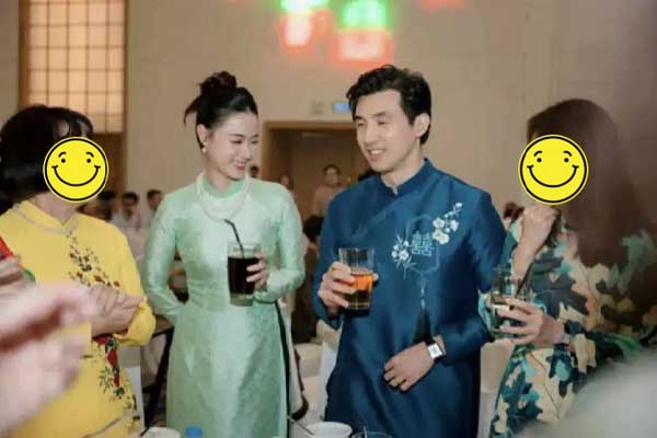 Tại đây hầu hết các thành viên trong đại gia đình đều mặc áo dài, tươi cười nhìn vào khung hình. Ngoài ra vợ chồng Midu còn có mặt ở các bàn tiệc, vui vẻ trò chuyện với khách mời và nhân viên công ty.