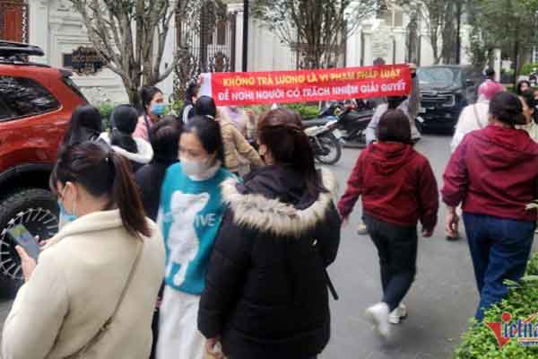 Chiều 4/1, theo ghi nhận của PV VietNamNet, hàng chục người lao động tập trung trước biệt thự của bà Hoàng Hường (SN 1987, tên thật Hoàng Thị Hường) trên đường Lê Đức Thọ, phường Từ Liêm (Hà Nội), yêu cầu được thanh toán lương công ty còn nợ.